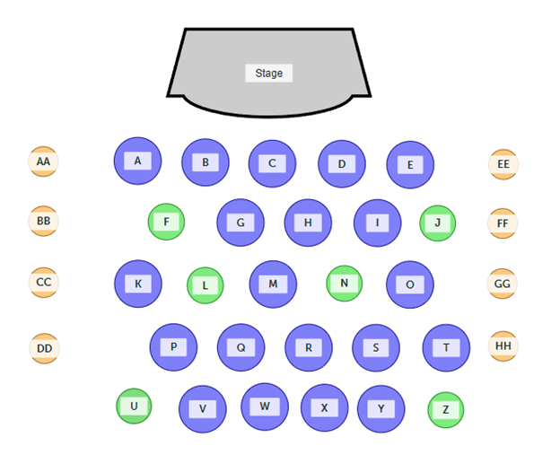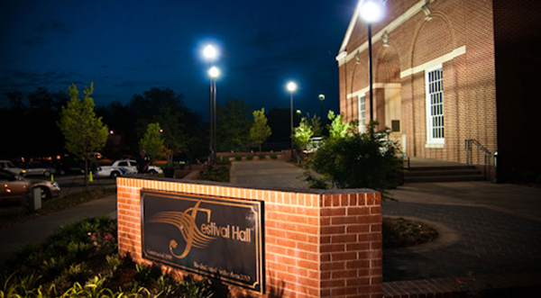 The Lake Country Players’ performances are currently held at Festival Hall, on Main Street in Downtown Greensboro, Georgia. Seating is at round tables of 8, 4, and 2 for an intimate theatre experience; specific seats may be reserved (and there is no requirement to buy the table). The theater is equipped with a state-of-the-art sound system, and there is not a bad seat in the house.